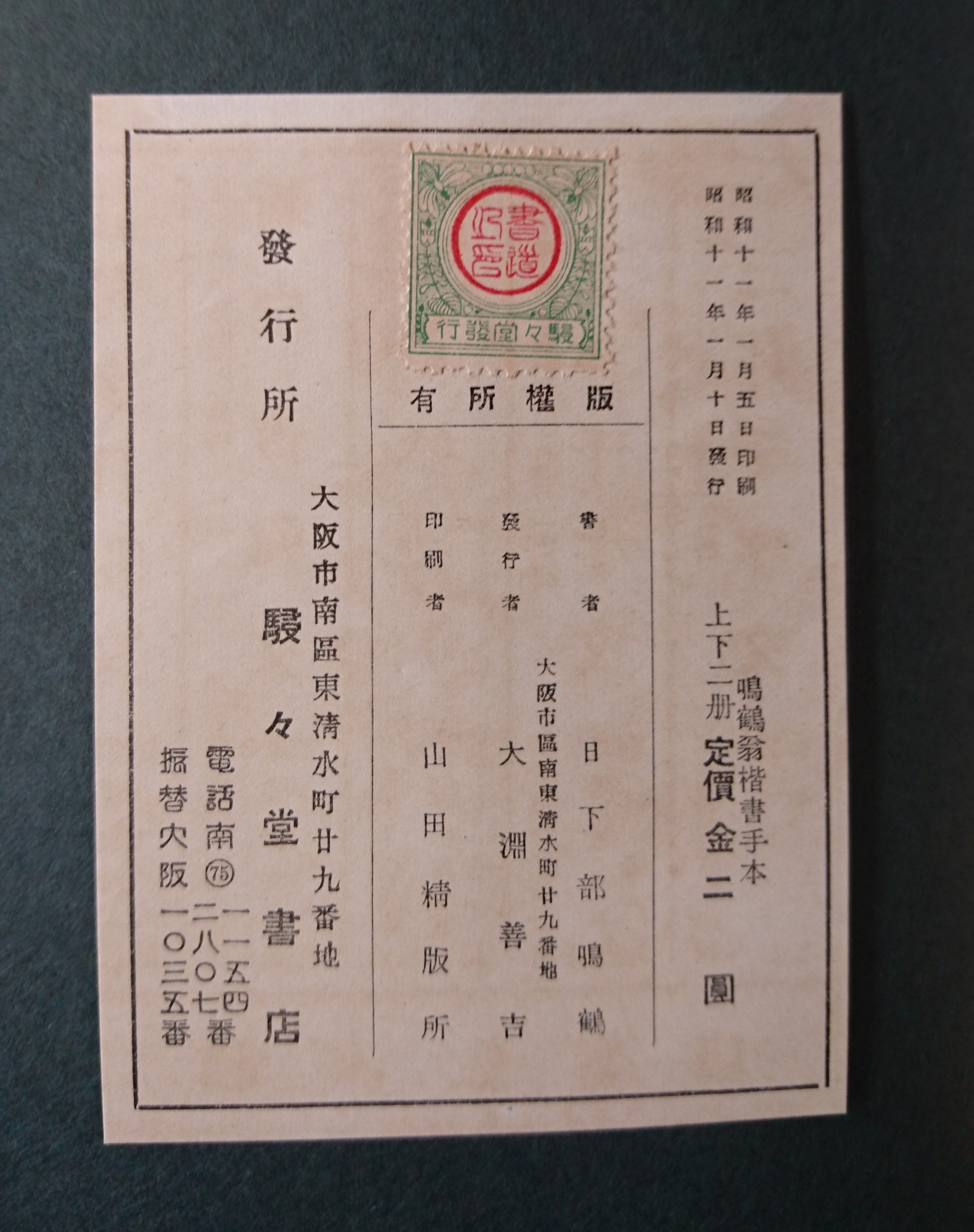 本の紹介 Published on 2017年10月10日 『鳴鶴翁楷書手本』上下2冊 2017/10/10 written by 悠久堂書店 明治の三筆の一人、日下部鳴鶴の楷書手本 1頁に8文字ではっきり見やすいお手本になっています 関連ページ