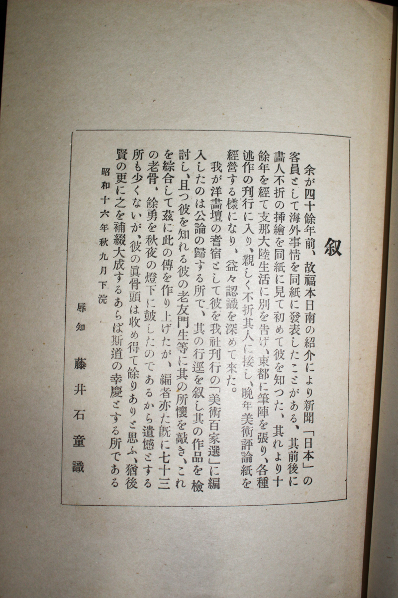 本の紹介 Published on 2017年11月15日 『中村不折』<昭和美術百家選> 2017/11/15 written by 悠久堂書店 書道博物館の素晴らしい収蔵品を見ると日本画家であり書道博物館の初代館長であった 中村不折とはどんな人物だったのか知りたくなります。 この本では、不折の生い立ちから業績、家族についてなど 気になる情報が読みやすい構成でよく書かれています 中村不折の生涯を知る事で書道博物館がさらに大切に思えるので おススメしたい1冊です 『中村不折』昭和16年 日華美術社 藤井石童編 関連ページ