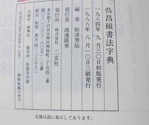 本の紹介 Published on 2017年3月23日 『呉昌碩書法字典』二玄社 2017/03/23 written by 悠久堂書店 清代の文人、呉昌碩の文字からできた字書 独特な右上がりの横線と抉るような鋭い払いがいい感じです 『呉昌碩書法字典』二玄社 関連ページ