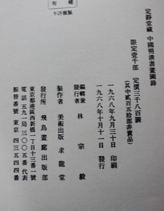 林宗毅志の個人コレクションである定静堂蔵の中国明清書画を集めた図録