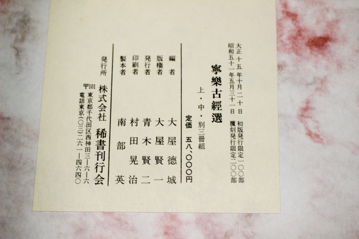 本の紹介 Published on 2018年5月31日 『寧楽古経選』稀書刊行会 2018/05/31 written by 悠久堂書店 奈良時代から奈良の諸大寺に伝わる古経を掲載した大型本 上下2巻と別巻の3冊組 上巻には写経、下巻は版経そして版経の口絵、挿絵を別巻にまとめてあります。 関連ページ