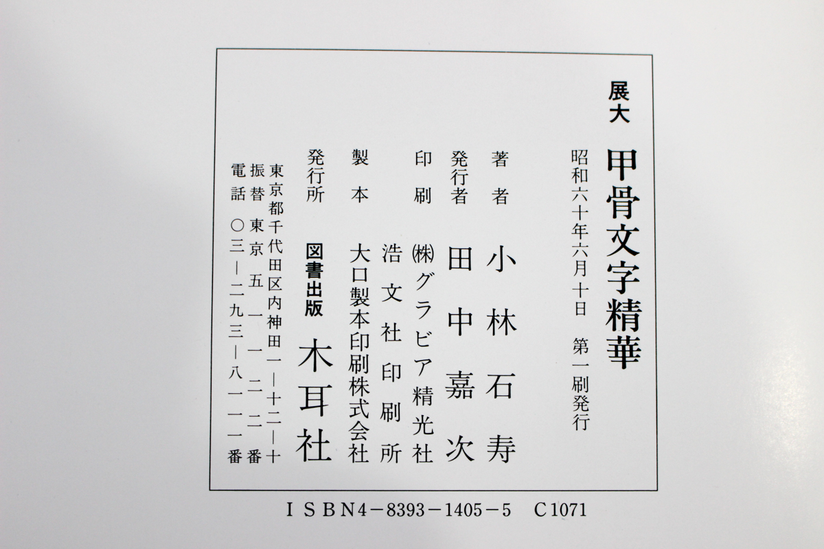 本の紹介 Published on 2017年4月13日 『展大 甲骨文字精華』木耳社 2017/04/13 written by 悠久堂書店 原拓にある甲骨文を拡大してみると一本一本の線に 強弱があったり筆順が見えてきたりします。 古代の文字には古代人の生活があるわけですが そこには計算の無い美が確かに存在しています。 自分の書く字があざとく思えた時、甲骨文に新たな発見があるかもしれません 関連ページ