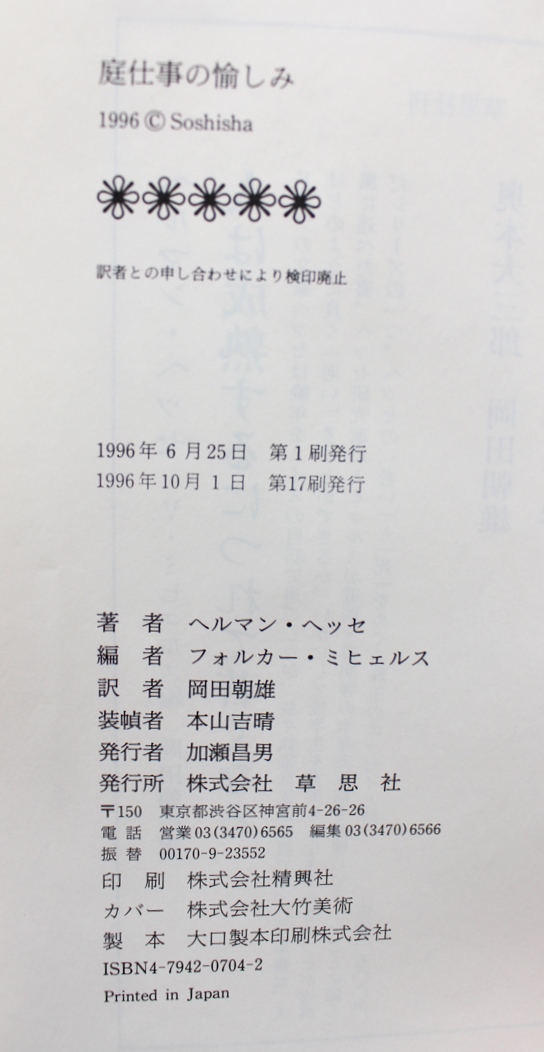 本の紹介 Published on 2017年2月23日 『庭仕事の愉しみ』ヘルマン・ヘッセ 2017/02/23 written by 悠久堂書店 春が近づいてくると庭の植物のことが気になりますが 半生を創作活動をしながら庭作業に没頭して過ごした作家ヘルマン・ヘッセの本をご紹介 一般的なエッセイではなく所々散文で書かれた文章にぐんぐん引き込まれ 自然の中に身を置きたい気持ちになります 都会の生活で疲れた人にぜひおすすめしたい1冊です 関連ページ
