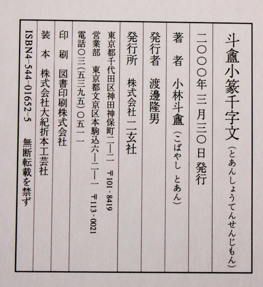 『斗盦小篆千字文』は2000年に二玄社から1帙2帖で発行され
