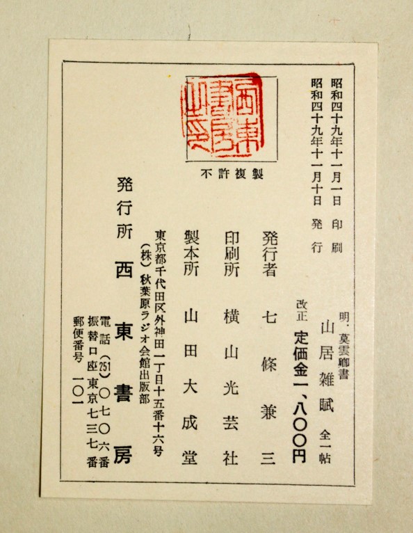 本の紹介 Published on 2018年7月18日 『明 莫雲卿(是龍) 山居雑賦』2018/07/18 written by 悠久堂書店 明の書家であり文人画家である莫是龍(雲卿)の法帖 董其昌に画を教えた画家として知られている。 この『山居雑賦』は一行3から4文字の行草体で 31ページにわたり書かれています。 はじめはぽつぽつと一文字づつ丁寧な書き出しですが 後半は連綿も多く勢いが感じられ一気呵成に書いたのが 伝わります。 『明 莫雲卿 山居雑賦』西東書房 昭和49年 関連ページ