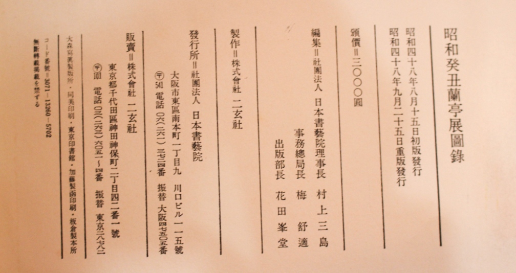 本の紹介 Published on 2017年2月4日 『昭和蘭亭記念展』図録 王羲之 written by 悠久堂書店 王羲之の蘭亭の宴が催された永和9年(353年)から1620年後の癸丑、 昭和48年に各種の蘭亭叙や蘭亭にちなんだ文物、現代の作家の作品などを一堂に会した 展覧会が行われました 千年以上の時を超えて今なお書聖として君臨する王羲之最高傑作を 様々な角度から楽しめる図録です。 『昭和癸丑蘭亭展図録』 日本書藝院 『昭和蘭亭記念展』 五島美術館 関連ページ