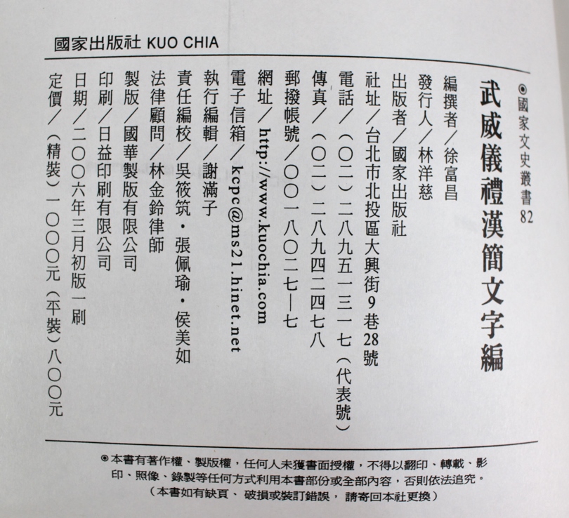 中国で発行された武威漢簡の字書です