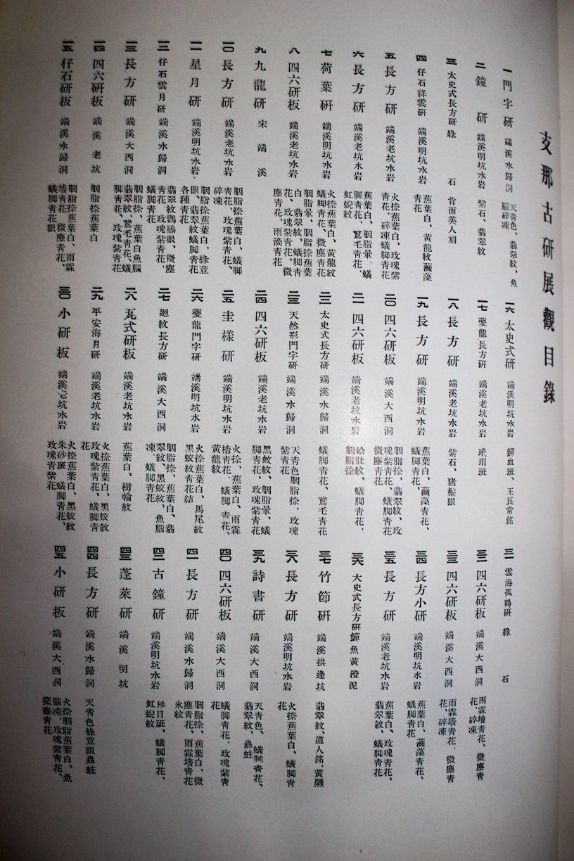 本の紹介 Published on 2018年9月24日 『漢研二千年記念古研展観図録』2018/09/24 written by 悠久堂書店 画家坂東貫山が蒐集した中国の名硯の展覧会図録 図版63点を含む当時出品された硯の目録200点分が掲載されています 目録には硯の名前、産地、彫り物の柄が書かれていて 端渓に至っては洞の名前にまで及んでいます。 『漢研二千年記念古研展観図録』岡田平安堂 昭和11年 関連ページ