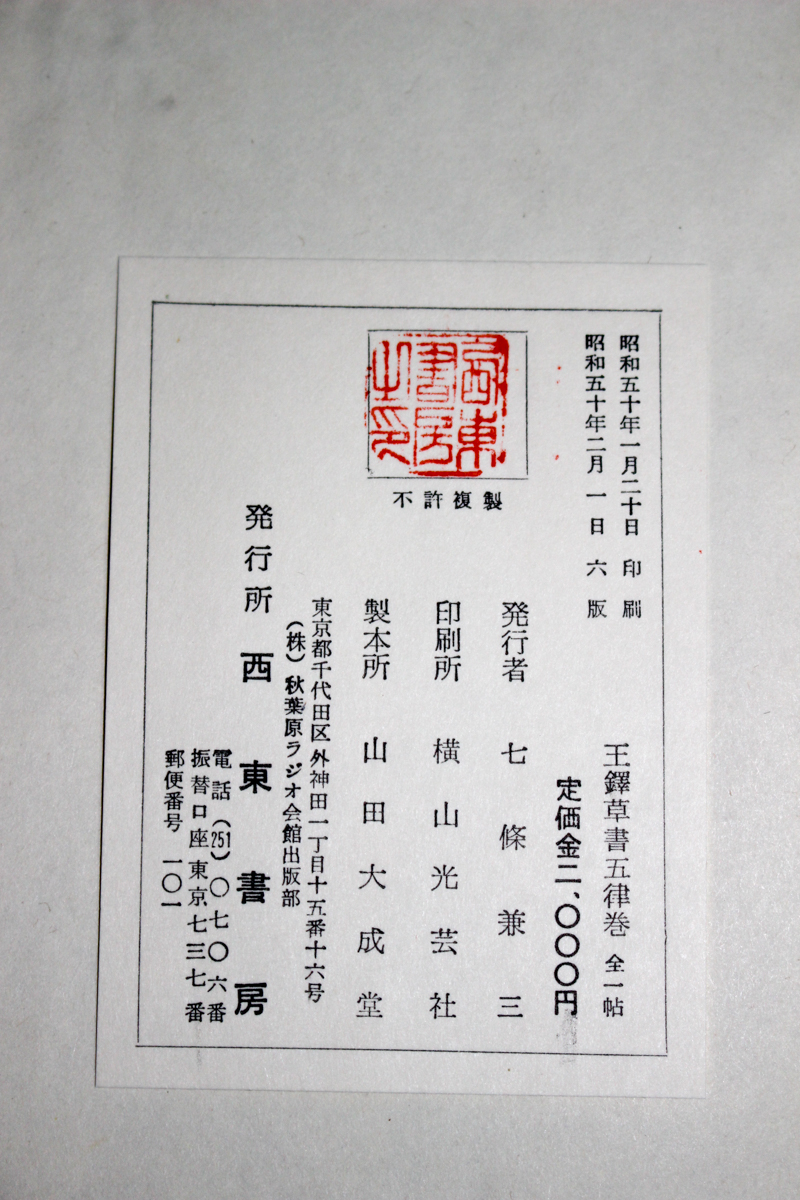 『王鐸草書五律巻』西東書房 昭和50年