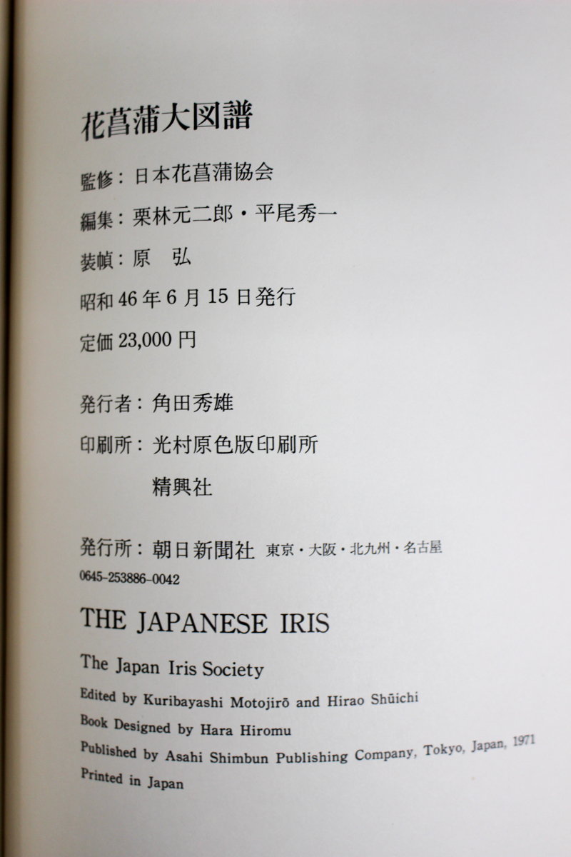 本の紹介 Published on 2017年6月5日 『花菖蒲大図譜』朝日新聞社 2017/06/05 written by 悠久堂書店 もうすっかり夏のような気候ですが、 皇居堀端の水辺を見ると美しく花菖蒲が咲いています。 とはいうものの本当にアヤメではなく花菖蒲なのか自信がありません。 謎解明のため『花菖蒲大図譜』を覗いてみました 私が見たものは花菖蒲で間違いなさそうです。 ちなみに英語では花菖蒲、アヤメ、杜若すべてがJapanese Irisなんですね。 ややこしいです。 関連ページ