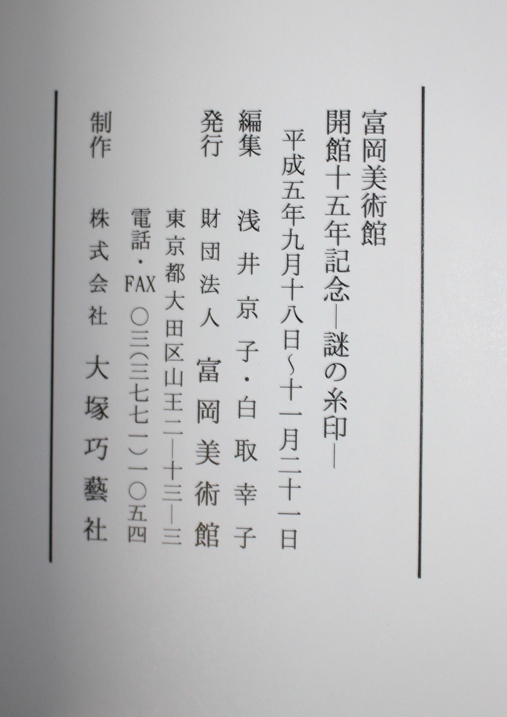 本の紹介 Published on 2017年11月21日 『謎の糸印』2017/11/21 written by 悠久堂書店 用途も起源も謎だらけの約3センチほどの小さな糸印の秘密を探る展覧会の図録 小さいながらも動物や人を型取ったつまみと読めそうで読めない謎の模様 不思議な魅力に包まれたほかに類のない展覧会です 『開館15年記念―謎の糸印』富岡美術館 平成5年 関連ページ