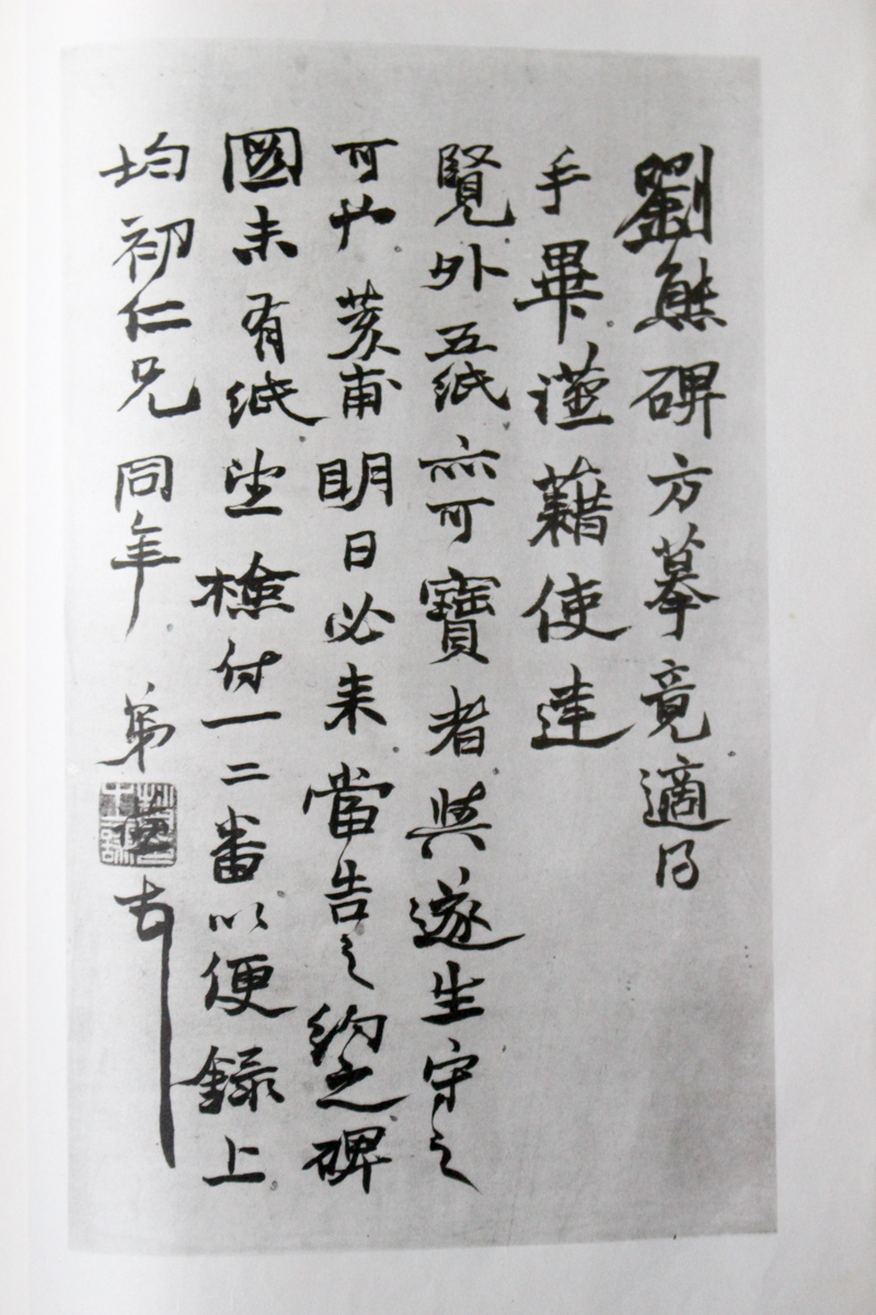 本の紹介 Published on 2017年9月8日 『趙之謙尺牘悲庵手札』清雅堂 2017/09/08 written by 悠久堂書店 昨日に引き続き趙之謙の書をご紹介します。 作品以外の趙之謙の文字はどんな文字だったのか気になったので 探してみました。 普段の文字にもやはりどっしりとした横線が見られます。 沢山の手紙がこの中には掲載されていますが、 中には「古本店に行っていろいろと探したが、これといふ獲物もなかったが…」 なんていう一文もあるようです。 いつの時代も良い本はなかなか手に入らないようですね。 『趙之謙尺牘悲庵手札』清雅堂 原寸大コロタイプ精印 昭和53年発行 関連ページ