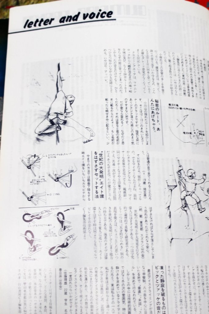 本の紹介 Published on 2016年6月23日 クライミングジャーナル written by 悠久堂書店 今日は1980年代のクライミングジャーナルをご紹介 表紙から既に挑発的なサブタイトル『いま一番過激なスポーツ・マガジン』の文字が飛び込んできます。 国内外の岩場ルートマップや写真が充実していて今でも楽しめること間違いなしです クライミングジャーナル 関連ページ