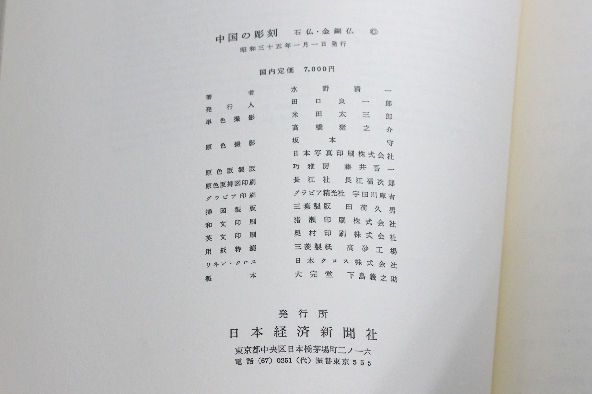 未分類, 本の紹介 Published on 2016年8月18日 中国の彫刻 石仏・金銅仏 written by 悠久堂書店 中国の石窟寺院の調査研究をした水野清一が昭和35年に日本経済新聞社から発行した 『中国の彫刻 石仏・金銅仏』は敦煌の仏頭や北魏の金銅仏など歴史を感じさせる美しい仏教彫刻の写真がたくさんあります。 近年仏像ブームで仏像の写真集がたくさん発行されましたが、 昔の印刷ならではの浮き上がるような仏像の姿に感動します。 関連ページ