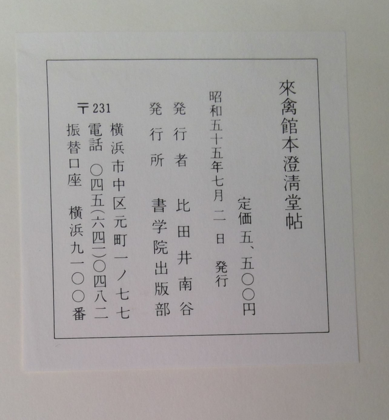 今日の1冊, 本の紹介 Published on 2019年5月28日 中国書道/來禽館本澄清堂帖 2019/05/28 written by 悠久堂書店 タイトル:來禽館本澄清堂帖 発行者:比田井南谷 発行所:書学院出版 発行年:昭和55年 関連ページ
