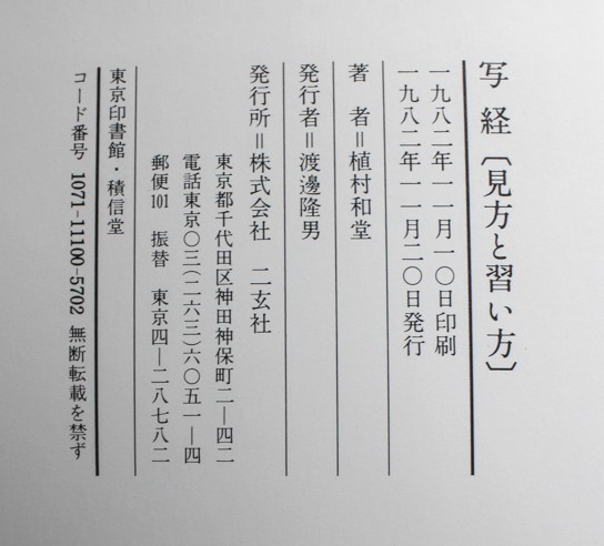 今日の1冊, 本の紹介 Published on 2019年9月18日 書道本/写経[見方と習い方] 2019/9/18 written by 悠久堂書店 タイトル:写経[見方と習い方] 著者:植村和堂 出版社:二玄社 発行年:1982年 関連ページ