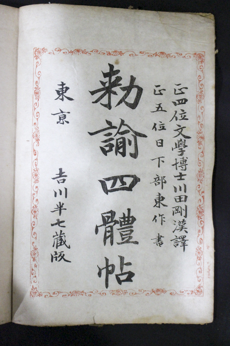 未分類 Published on 2019年11月6日 書道本/勅諭四體帖 2019/11/06 written by 悠久堂書店 タイトル:勅諭四體帖 筆者:日下部鳴鶴 発行所:吉川半七蔵版 発行年:明治28年 関連ページ