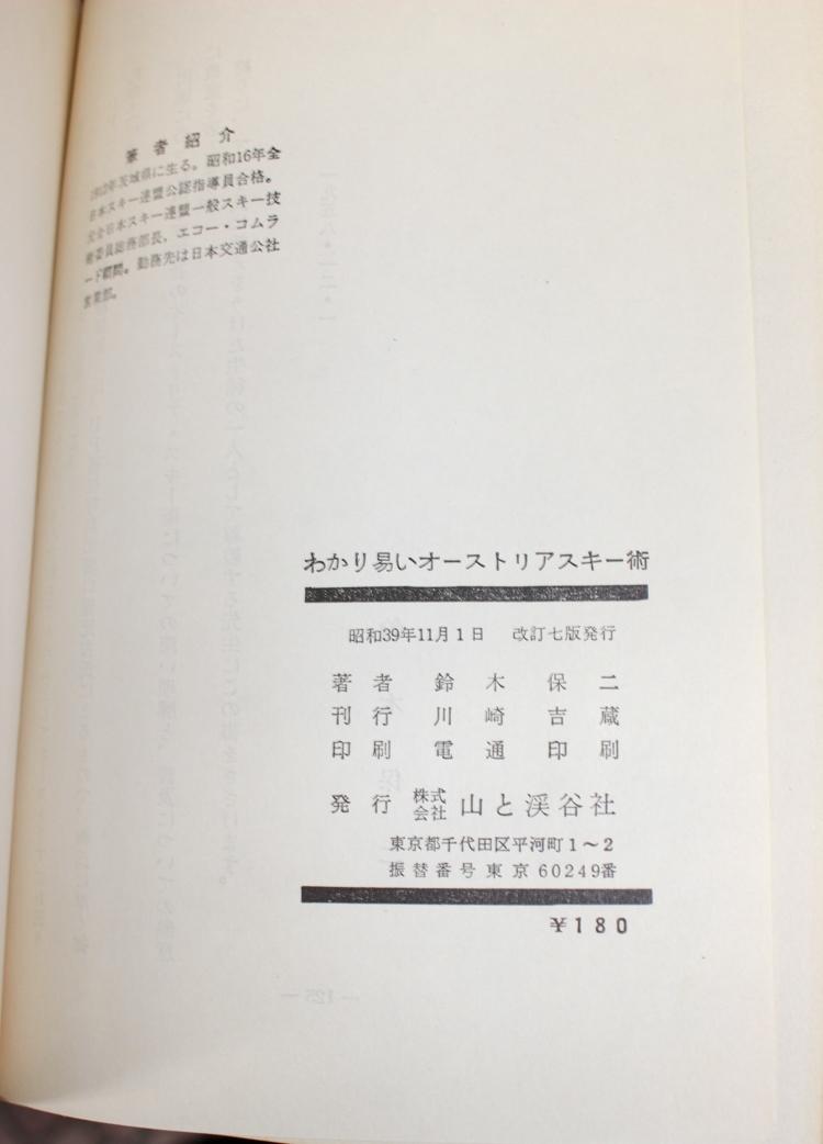 本の紹介 Published on 2017年6月16日 各種スキー教本 2017/06/16 written by 悠久堂書店 なぜか暑い日になるとスキーの本を紹介したくなってしまいます。 無意識で涼を求めているのかもしれません 昭和39年山と渓谷社から発行の「わかりやすいオーストリアスキー術」鈴木保二著 約半世紀前のスキーの教本は手書きで滑り方が書かれていて 本当にわかりやすいです。 写真もおしゃれで当時のゲレンデの様子が分かり文化的な資料としても 参考になります。 関連ページ