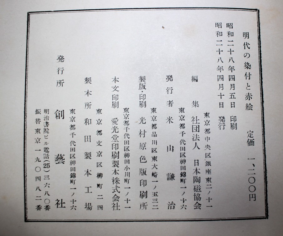 今日の1冊, 本の紹介 Published on 2019年2月8日 明代の染付と赤絵 2019/02/08 written by 悠久堂書店 タイトル:明代の染付と赤絵 編集:日本陶磁協会 発行:創藝社 発行年:昭和28年 関連ページ