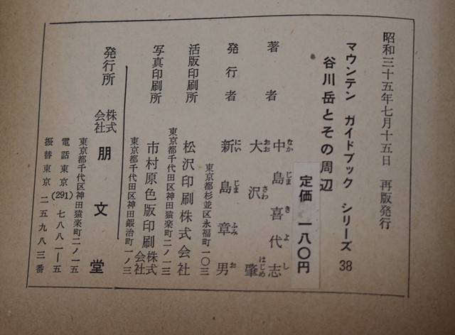 新着入荷, 本の紹介 Published on 2016年6月7日 昭和30年代の山岳ガイドブックなどなど written by 悠久堂書店 昭和30年代頃の各種山岳ガイドを入荷致しました 当時のコースや地図、写真がコンパクトにまとまっていて 現代と比較するのにもってこいです! 昭和30年代 アルパインガイドほか 関連ページ