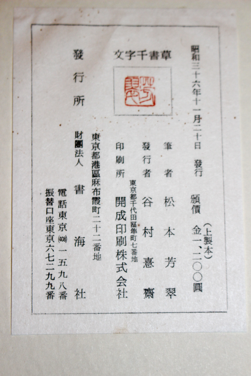 本の紹介 Published on 2016年12月20日 松本芳翠 草書千字文 written by 悠久堂書店 楷書の名人、松本芳翠の草書千字文です 楷書同様に端正で美しい文字が並び、芳翠ならではの草書で 人気が高いのもうなずけます 関連ページ