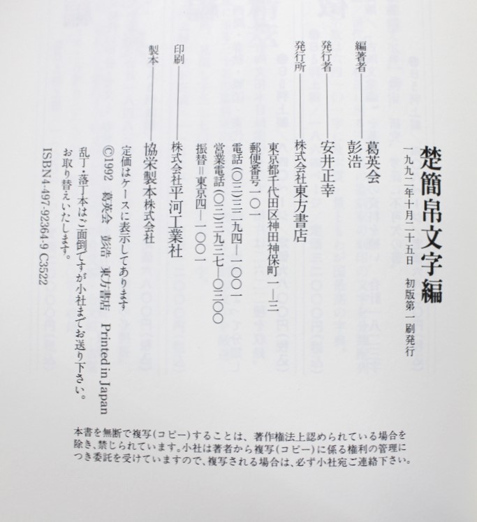 今日の1冊, 本の紹介 Published on 2019年9月17日 中国書道/楚簡帛文字編 2019/09/17 written by 悠久堂書店 タイトル:楚簡帛文字編 編著者:葛英会 発行所:東方書店 発行年:1992年 関連ページ