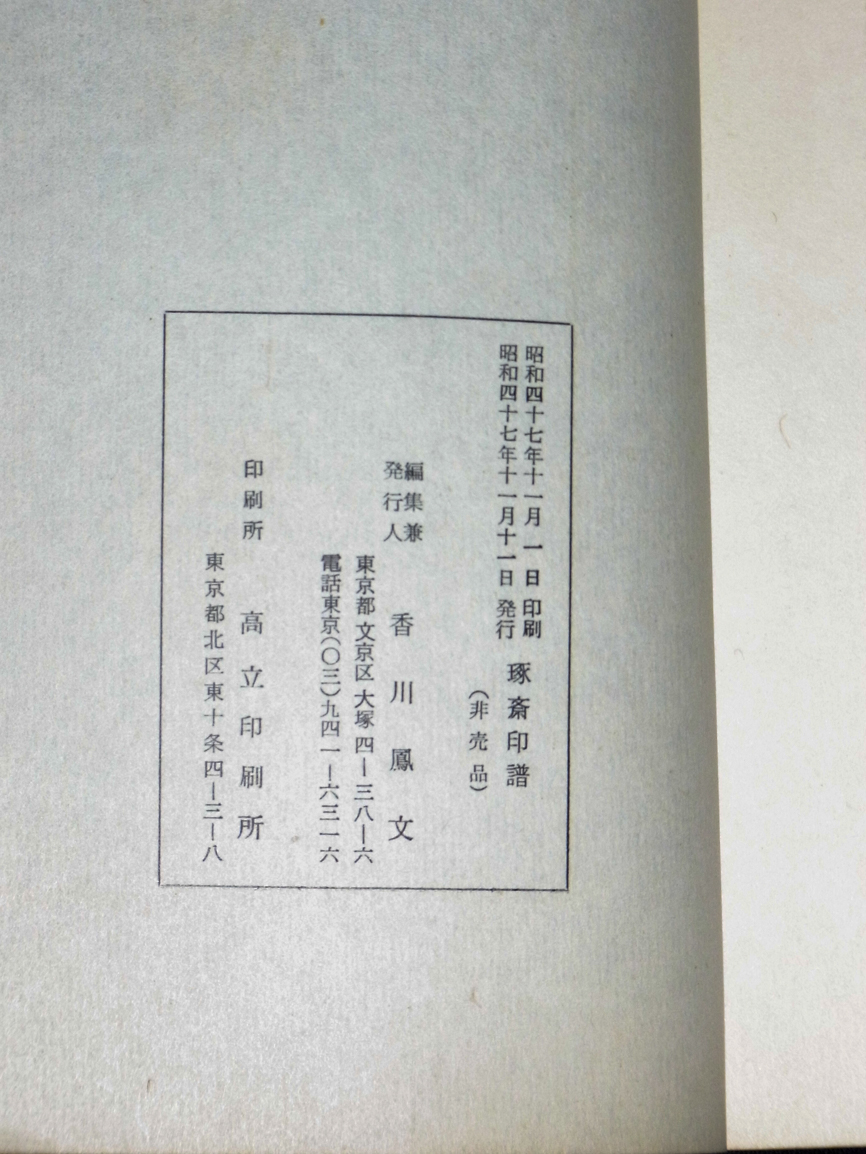 今日の1冊, 本の紹介 Published on 2018年11月19日 琢斎印譜 2018/11/19 written by 悠久堂書店 タイトル 琢斎印譜 編集 香川鳳文 発行年 昭和47年 関連ページ