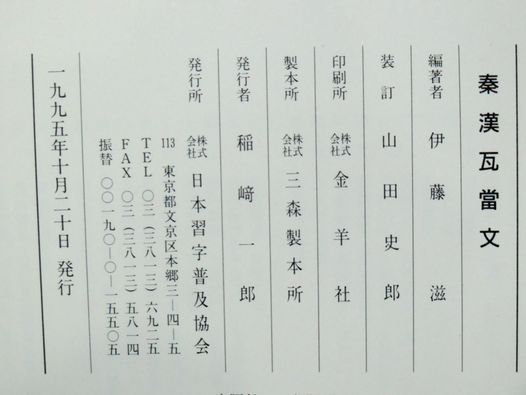 本の紹介 Published on 2016年10月21日 秦漢瓦當文を見る written by 悠久堂書店 中国の古い文字には木簡に書かれた木簡文字、 青銅金や石に書かれた金石文などがあります。 その金石文の一種に屋根に就ける瓦に書かれた文字、瓦當文があります。 古い寺社などの建物を正面から見たときに軒先の先端にある瓦には文字が入っていますが それを中国では瓦當といいます。 丸みのある瓦にバランス良くおさまった文字や絵はデザイン性の高さから 書道を知らない人が見ても楽しめます 関連ページ