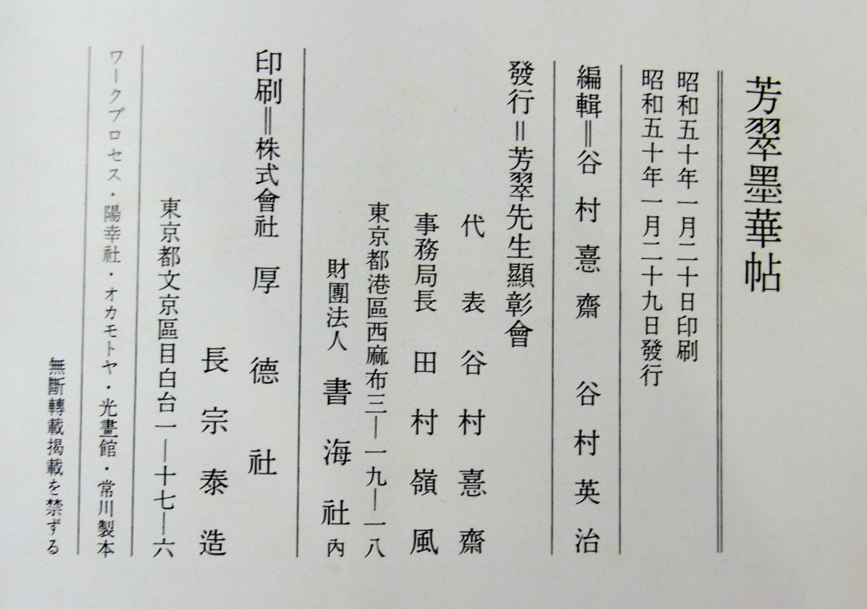 昭和49年に開催された芳翠書藝展の記念図録として